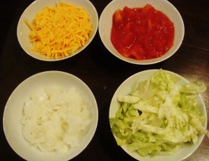 My mother insists that the cheese be put directly on top of the meat, followed by the salsa and the rest of it whichever way the bowls are going around the table. Dad, too, likes the cheese on the meat and is just as persnickety about the order of the rest of it. My brother doesn’t seem to really care.