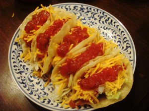 I can flat out put away some tacos. I love ‘em – grease and salsa dripping down my chin, the cold of the cheese, the hot of the meat, the crunch of the lettuce. I’ve been known to groan with delight.
