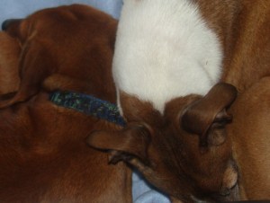 The puppies are champion nappers and if I do succumb to one, I’ll put them in bed with me where Trudy will serve as a foot warmer, Willy as a stuffed animal to clutch as I snooze, and Babette slumbering on top of the covers while completing the tableau of the Still Life with Snoring.