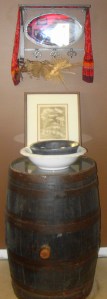 Probably the strangest thing – and stretching the natural definition – are the copper wires sticking out of a water pitcher in the kitchen. When they rewired Old Main at Marshall, the electricians left these end pieces of wire littering the basement floor. After walking past them several times one day, I began picking them up. They were bright, shiny copper and pretty. It seemed wrong to let them end up in the trash. At present, they need dusting, cleaning and polishing, but years later I still like them.