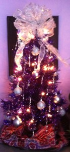 In what can only be termed a Christmas miracle, mom ran across a purple, table-top tree.  While I was wallowing on the couch at home, she marched in, handed me a purple tree and 16 silver balls and then marched out.  Woo Hoo!