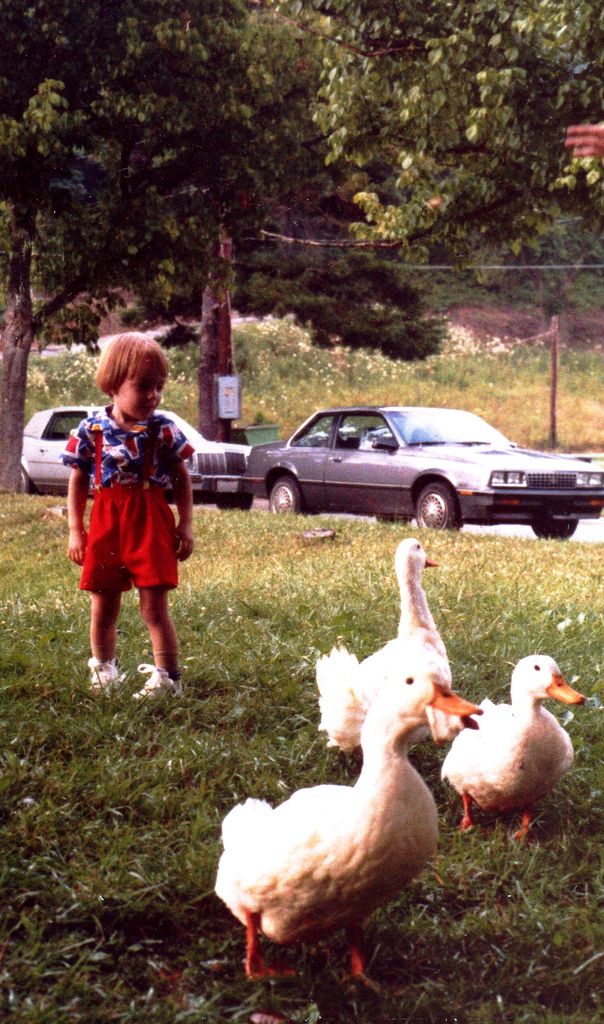 Chef Boy ‘R Mine was a wee thing and I woke him with my banshee cries. I did what any mother would do, I took off at run, snatched the kid out of the crib, and made a run for the bathroom. The last glimpse I had of The Ex was he, completely nude, running about the bedroom with a tennis racquet. I have no idea why we had a tennis racquet in the bedroom. (A few years later, he would use the same racquet to stand in the yard, swinging it to and fro, muttering Cicada Anyone? as we suffered through the 17-year locusts. I’m not sure the racquet was ever used for its intended purpose.)