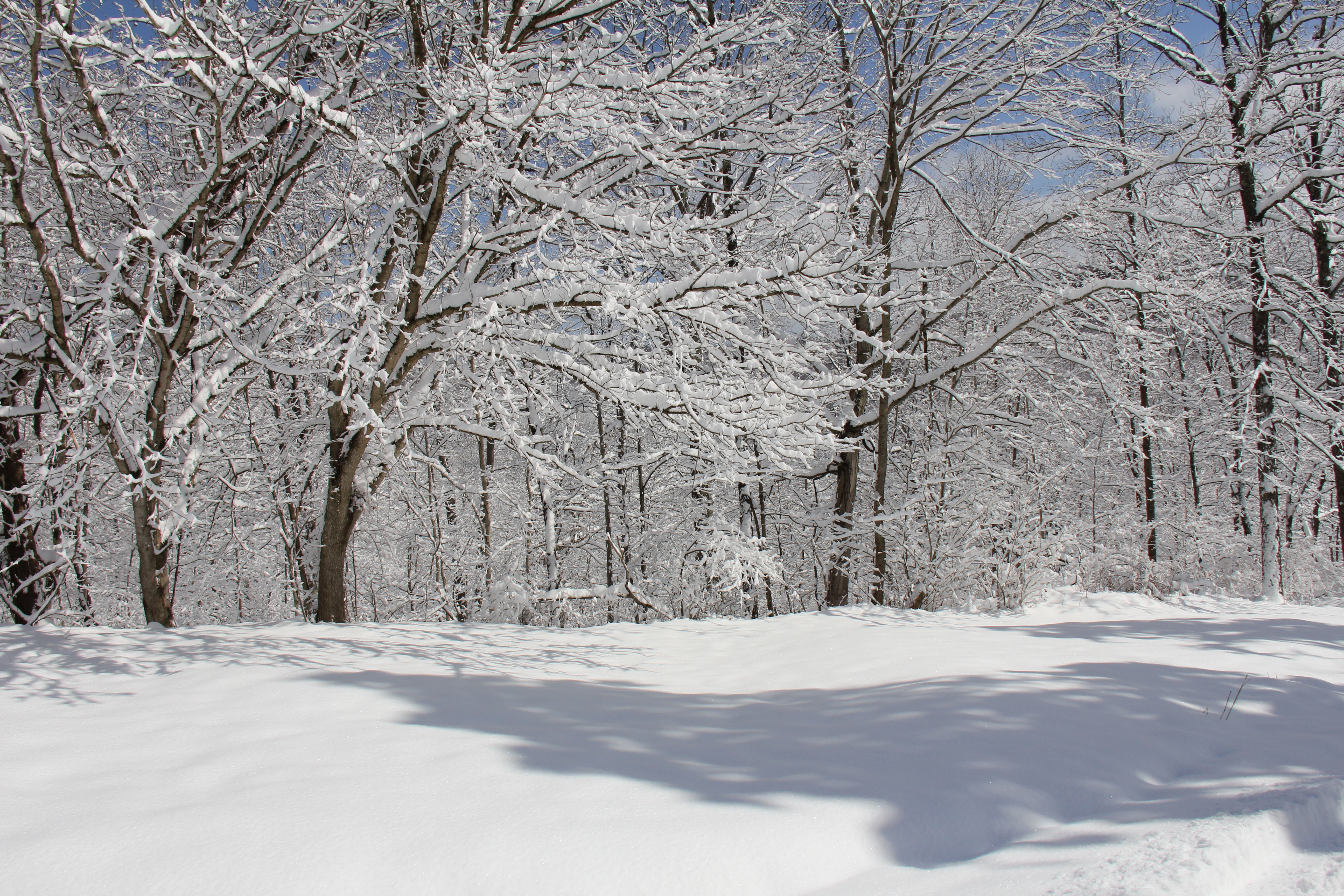I like walking in the morning after a big snow. The fluffy kind that eddies and swirls with each step. When the silence is so profound it is a roar. When all you can see is white. Frosted trees, curious mounds that used to be lawn furniture, and the small tracks of some wild animal out foraging for breakfast. When air sparkles silver and the shadows make interesting images on the white canvas of the snow.