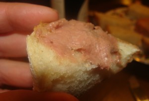 I had a boule of crusty bread, which wasn’t ideal but it was fresh out of the oven. To perfectly complement a torchon of foie gras, a sweet-ish bread such as a brioche is best.