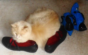 She doesn’t want much affection, but she has to sit on my stuff – shoes, coat, purse, laundry, books, laptop. The minute I try to touch her, she’s apt to be pissed off.