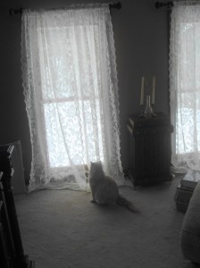 The glimpse I had of her revealed a beautiful, long-haired, champagne colored cat. I have a weakness for both champagne and long-haired cats. My heart’s desire had always been to have an all-white, long-haired cat, but after Maggie, I think not. They say white cats are crazy more often than not.