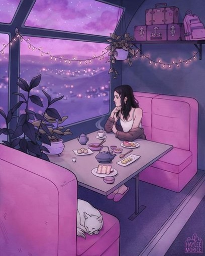 For instance, who travels with potted plants and decorates their train seat with twinkle lights? Feeds their cat cake with a bowl of cream, of course?