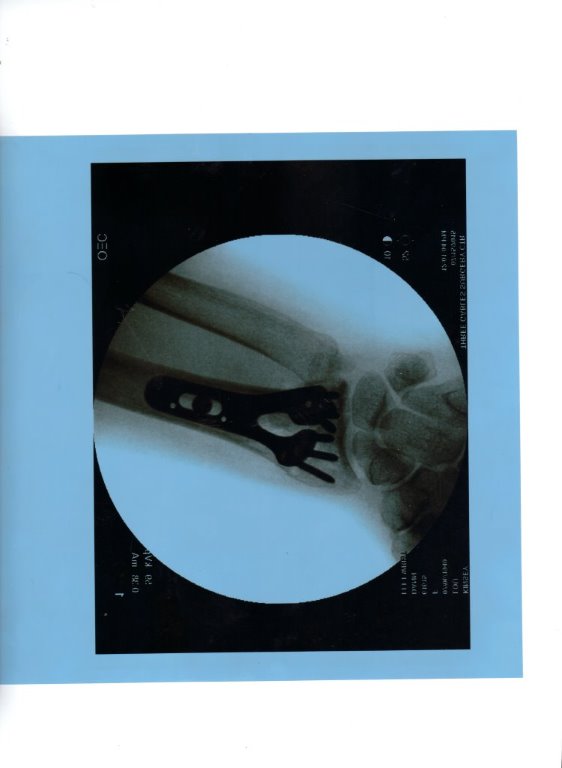 Go ahead and laugh. I did and so did she. She even laughed when she found it was broken in two places and required surgery. She laughed during pre-op and laughed post-op. She laughed when she viewed the x-ray showing her dandy new titanium plate and pins.