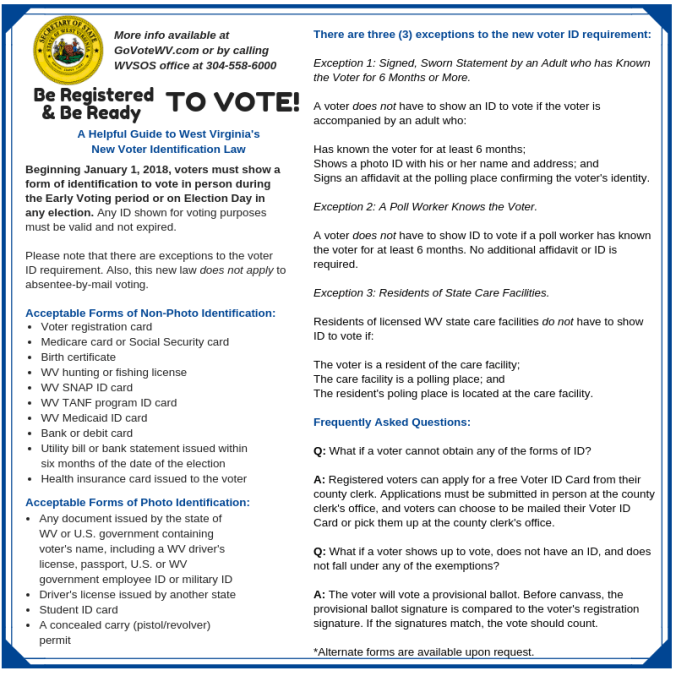 When I got home, I checked the Secretary of State’s website for acceptable ID at the polls. It clearly states that my Voter Registration Card is sufficient.