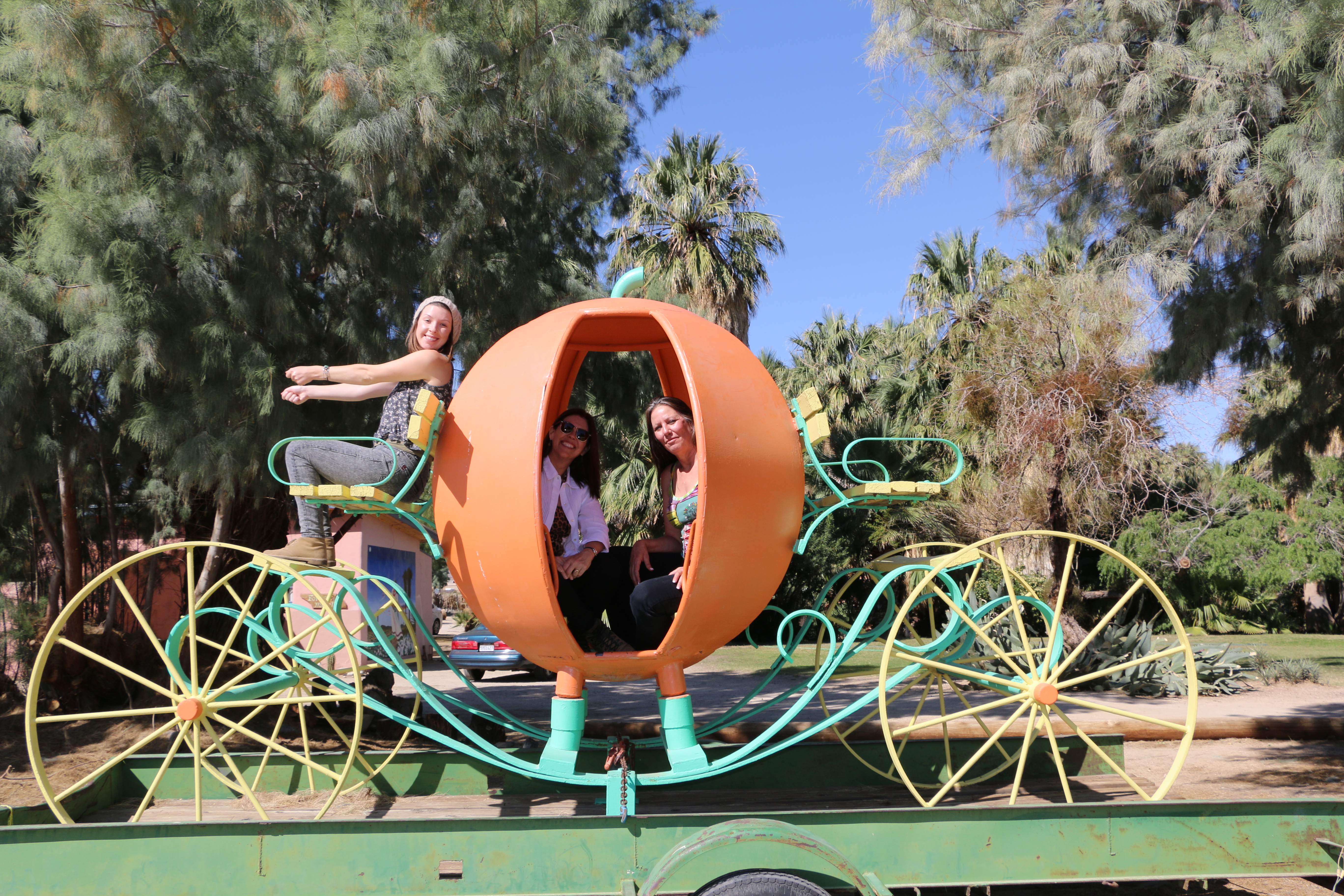I had the opportunity nine years ago to go there and I did. I have a photo of me at what was basically the Visitors Center for Twenty-nine Palms. For some reason, they had a metal sculpture of Cinderella’s pumpkin coach.