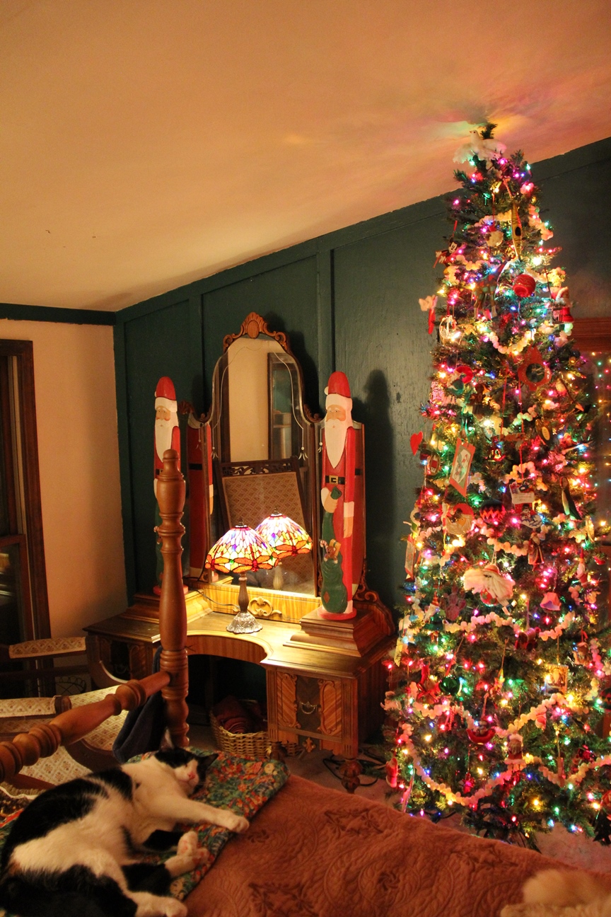 I don’t need more ornaments and I’m limiting new acquisitions to the truly special. This year I was enticed by a vintage style Kurt Adler walnut. When it arrived, I remarked to the cat that it didn’t look much like a walnut, but the memories surfaced nonetheless. And that’s the point of everything on my tree – memories and stories and the weft and weave of my life.