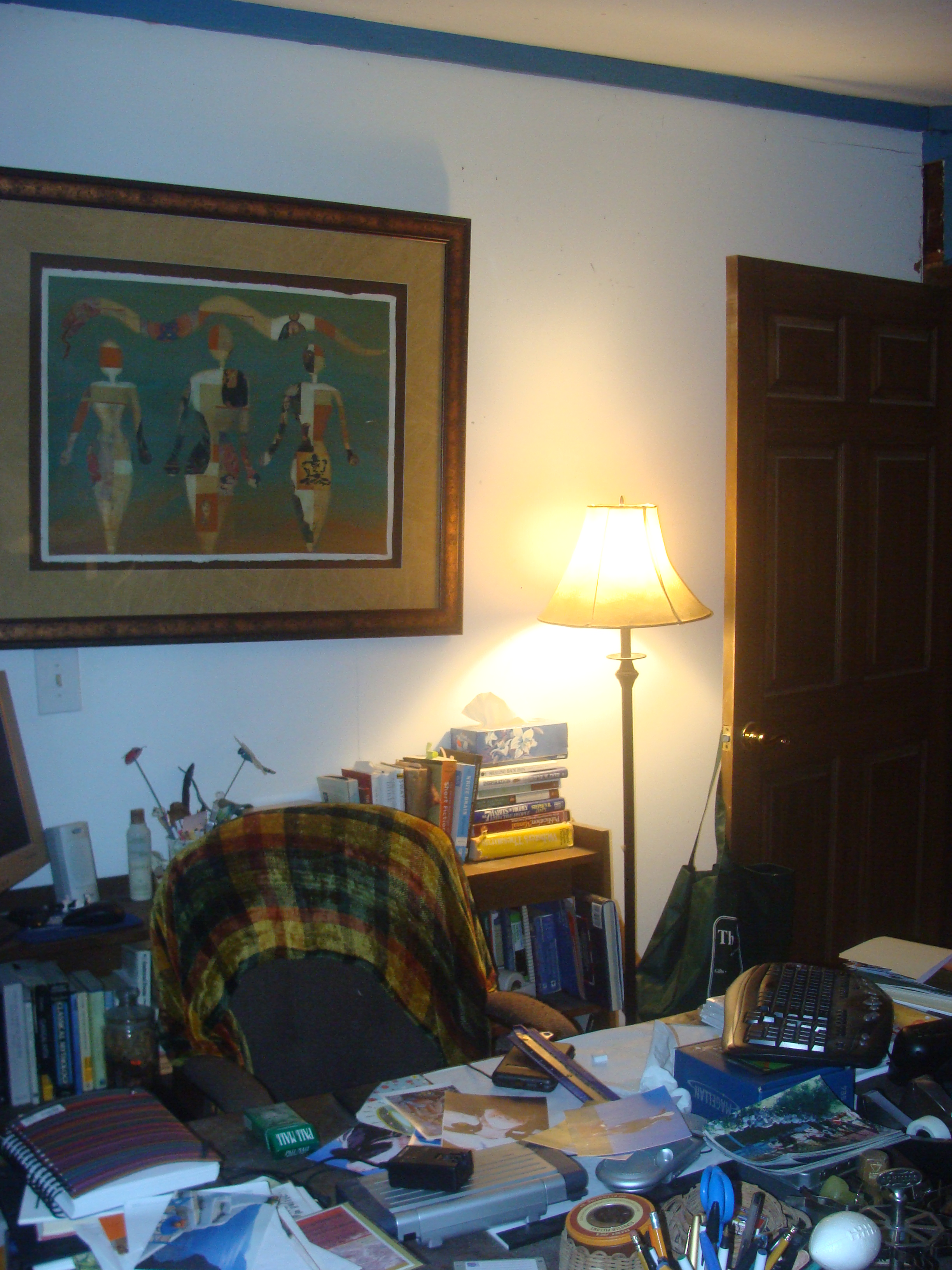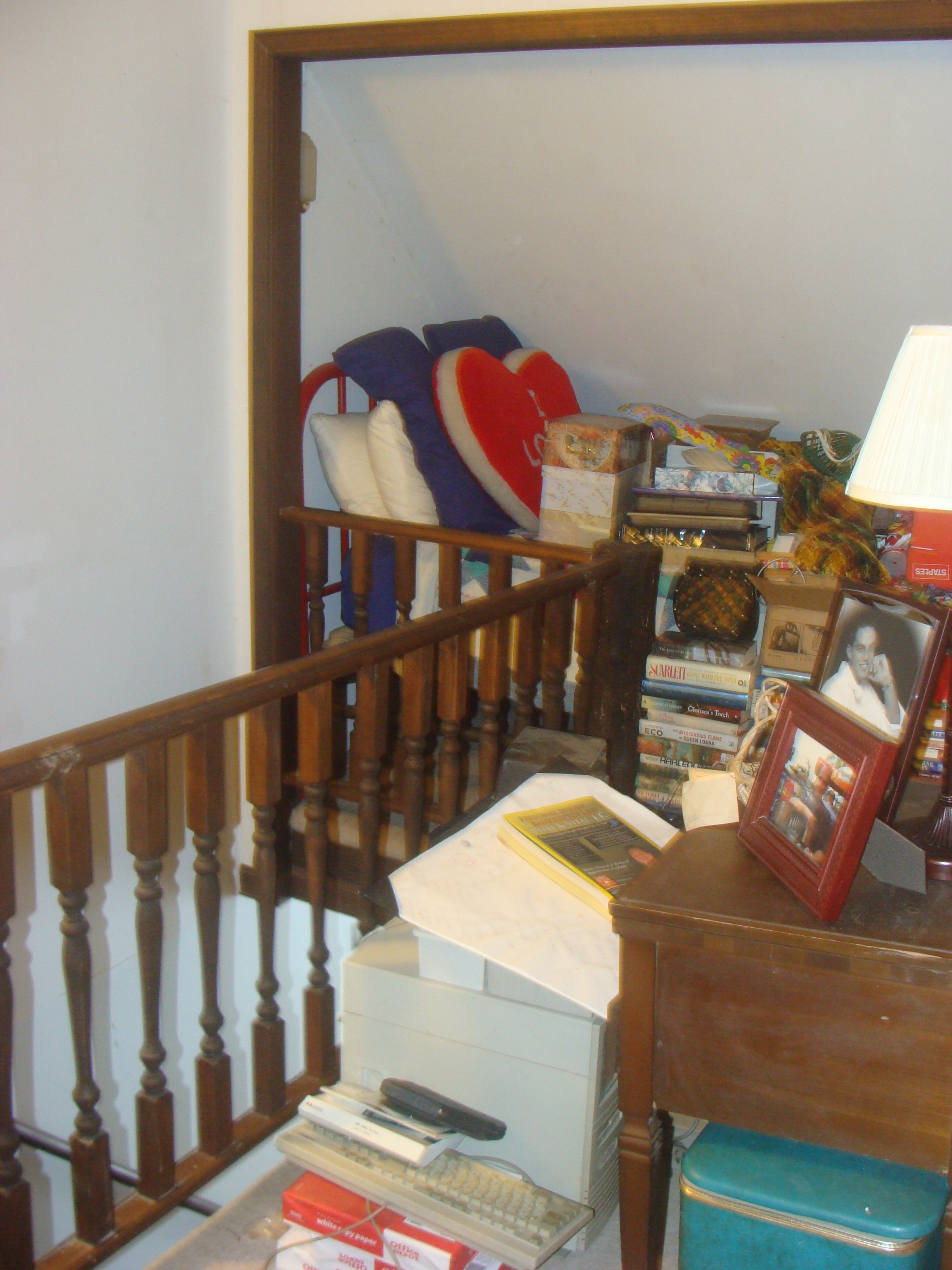 After two weekends of painting prep, I got the paint out yesterday. It took all flippin day to do about 20 minutes worth of ceiling painting. Tonight, I girded my loins, told my back to shut up, and set to. Three hours later, I have one coat of primer on the ceiling. I’m figuring on two coats of primer and two coats of color. It’ll be years before I’m done.
