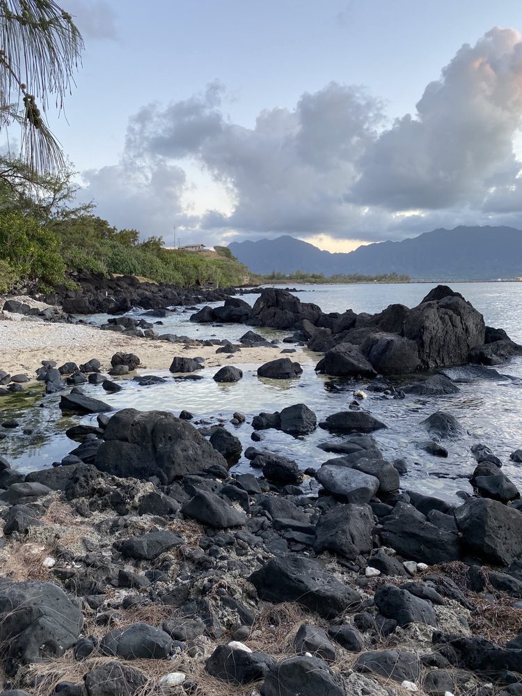 The beach at the very end of what used to be Lawrence Road on the Kaneohe Marine base was one of Oahu’s less spectacular beaches. Unlike Waikiki, sand had not been imported from Australia to create a tourist-friendly spot to sunbathe. No. The beach was a gleaming black lava flow with large, jagged pieces of the black rock the Goddess Pele had tossed about, sitting atop the long-since-cooled lava flow of her anger that oozed across even earlier flows.