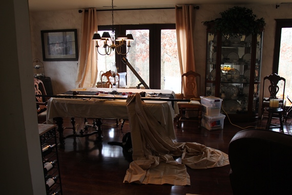 For more than two years, the house has been in an absolute state of chaos, one that accelerated In June as Doug’s stuff needed dealing with. There has been all matter of inconveniences: painting, drywalling, floor installing, termite eradication, near gutting of the family room, bookshelving, more painting, wallpapering, and a fair rodeo of sorting and organizing.