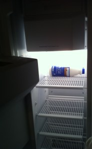 It’s a big refrigerator. It looks forlorn. Or maybe not. Maybe it looks hopeful. Is it a beginning or an end? It looks like if I rearranged the words a bit, it could be the opening of a short story.