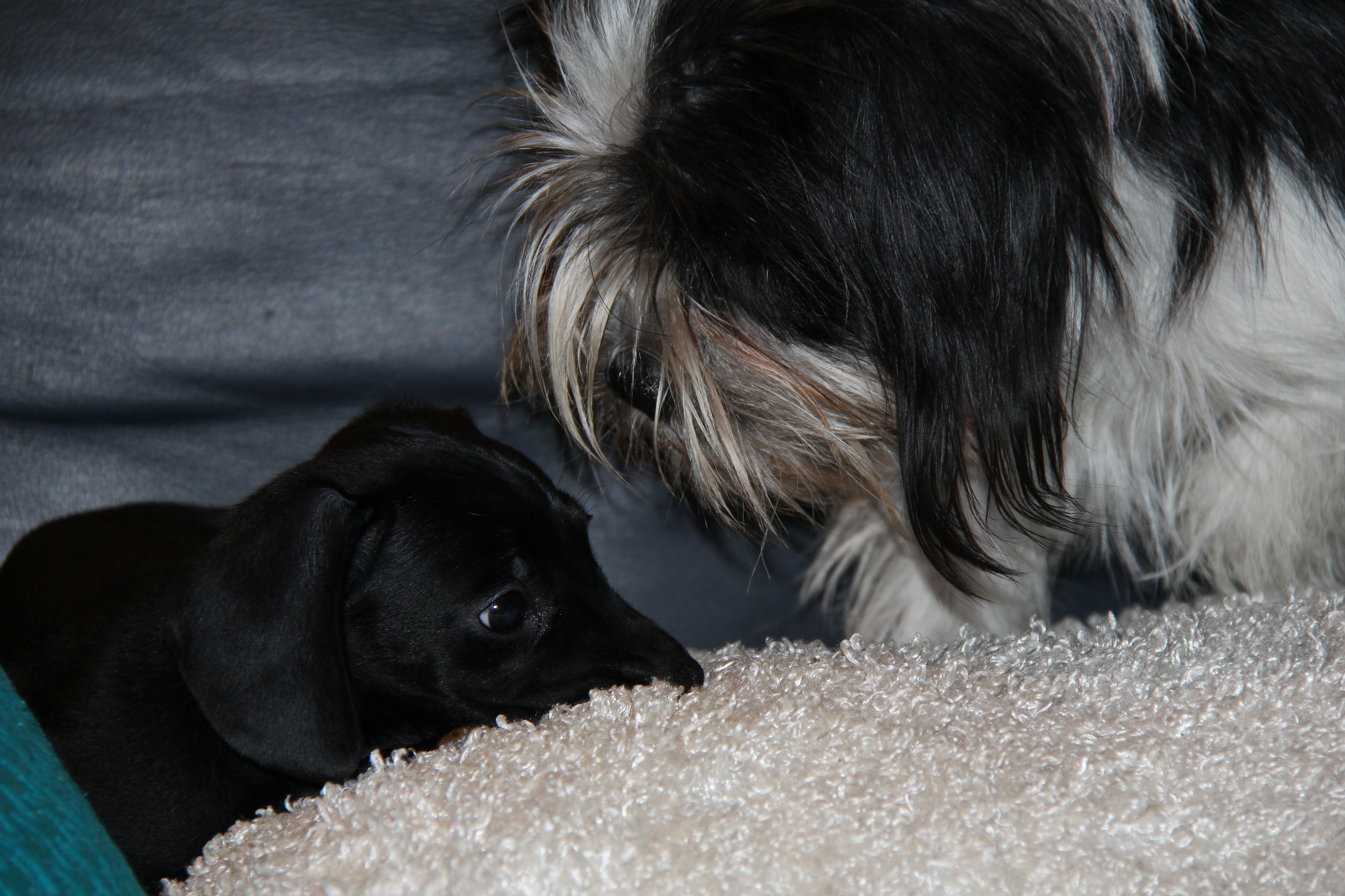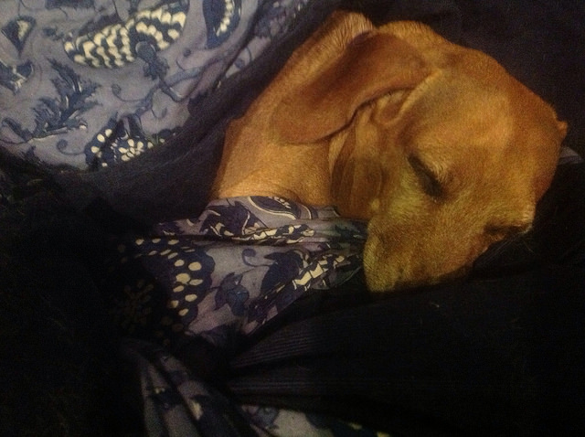 Phoebe is jealous – the first sign I’ve seen that she is even a little bit territorial about my affection. She loves Dolleigh and this whole dog-sitting thing is a great adventure for her, but nonetheless, she does what she can to distract me from loving on Dolleigh, an impossibly fat and affectionate dachshund.