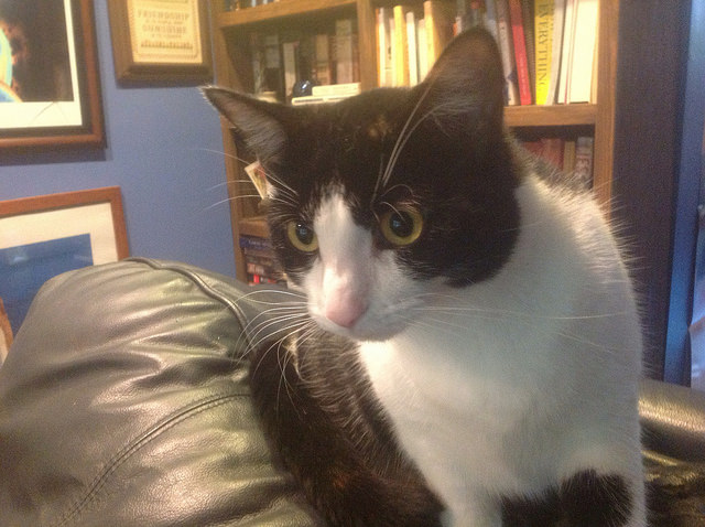 I’m on the sofa. Next to me is the old, snoring dog that I’m taking care of while my parents are out of town. Dolleigh is snuggled underneath the sofa throw and seemingly content. Behind me, on the back of the sofa, is Izzy, my black and white cat. She, too, is sleeping but without the snoring – she’s far too young for such indignities. Maggie, the old champagne-colored cat, is sprawled on the coffee table in front of me. While old enough, she is quiet in her sleep. Perhaps her cat nap isn’t deep enough. Phoebe, my somewhat Shih Tzu puppy, is nestled against me. She is not sleeping.