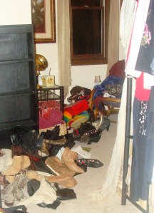Alas. All the crap that was in the little closet is now spread all over the guest room. If I were a different person I might be tempted to say I have too many pieces of footwear. But we all know that I am never ever, not ever, no way Jose going to say something that silly.