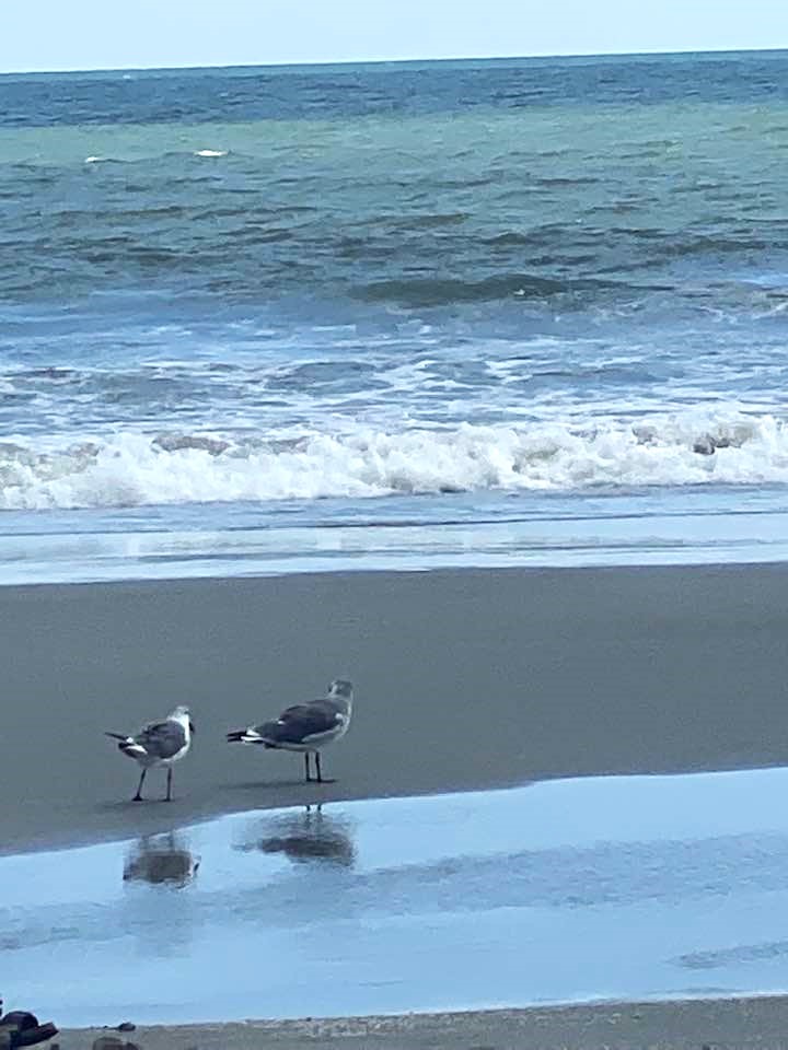 We, my friend and I, sit there until the shadows began to lengthen and the sun moves behind us. I can feel old Sol’s heat on my shoulders and back. I feel the stress dripping off me into the sand where the ocean took it far away.