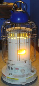 I have the tea kettle on top of the kerosene heater – I think it seems friendlier that way. Besides, it’s a small (and futile) attempt to make the damn thing more aesthetically pleasing.